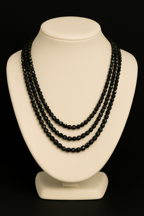 Elegantní náhrdelník o délce 200 cm je tvořen originálními skleněnými korálky, které vznikly z tradičního jizerskohorského skla. Tento šperk je vyrobený ručně.